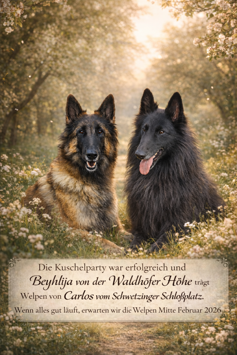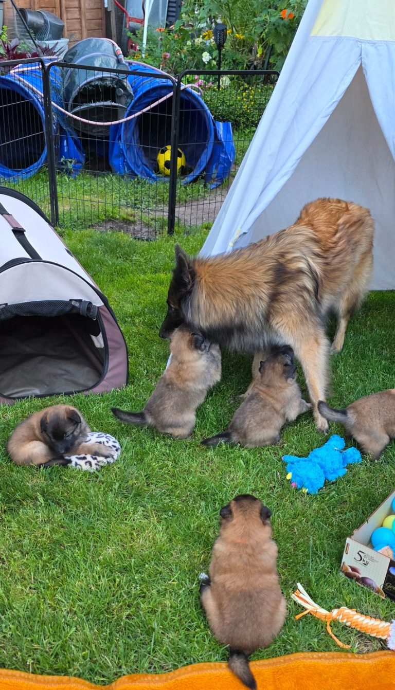 Willkommen bei Tervuerenzucht von der Waldhöfer Höhe! Hier erfahren Sie alles über unseren neuesten Wurf von Tervueren. Unsere Hündin Uhsima de Roanelle hat am 18.7.2025 fünf gesunde Welpen mit Xay von Frankental bekommen. Eine aufregende Zeit für uns und wir freuen uns, unsere kleinen Racker zu präsentieren!