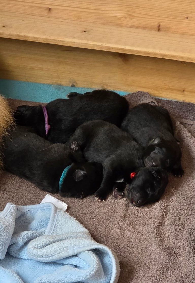 Unsere Welpen sind wohlauf und entwickeln sich prächtig. Sie spielen, erkunden die Welt um sich herum und genießen die Gesellschaft ihrer Mutter sowie unserer Familie. Jeder Welpe bringt seinen eigenen Charakter mit und wir können kaum erwarten, ihre individuellen Persönlichkeiten kennenzulernen.